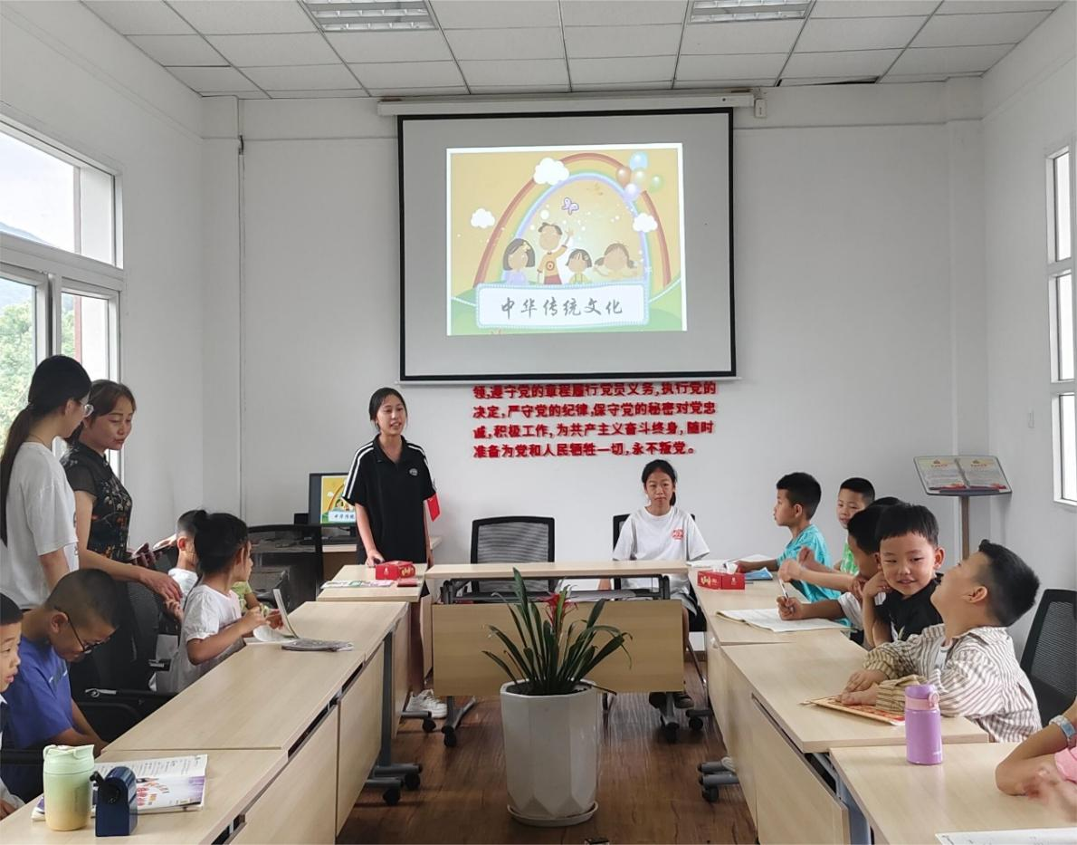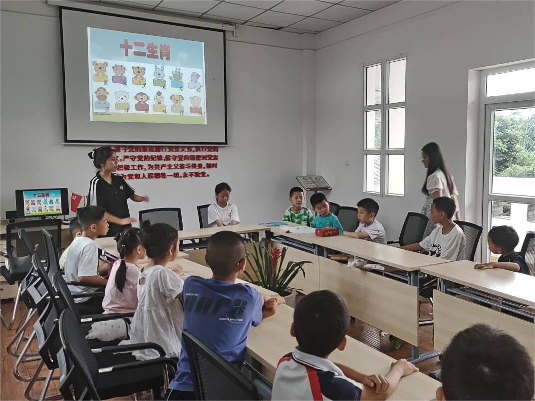 7月6日上午9:00,太阳成集团tyc234cc古韵绵长·国学流芳-文韵队前往雅安市雨城区余家村党群服务中心,向当地儿童进行了以中华传统节日、十二生肖等为主题的中华优秀传统文化宣讲。本次活动旨在提高孩子们的传统文化素养,帮助其深入了解中华优秀传统文化。