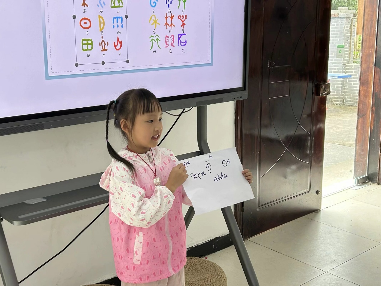 为了增加课堂的趣味性和互动性,实践成员们为小朋友们放映了生动有趣的甲骨文动画,将甲骨文的字形结构与日常生活结合起来,让抽象的甲骨文变得鲜活起来,走进了孩子们的生活。与此同时,队员们还设计了一系列甲骨文趣味活动,包括看图猜成语、甲骨文连线、识字挑战和汉字对对碰。最后,孩子们运用学习到的甲骨文知识进行了绘画创作,既巩固了所学知识,又加深了对传统文化的理解,每一幅作品都充满了童趣与创意,现场气氛活跃。