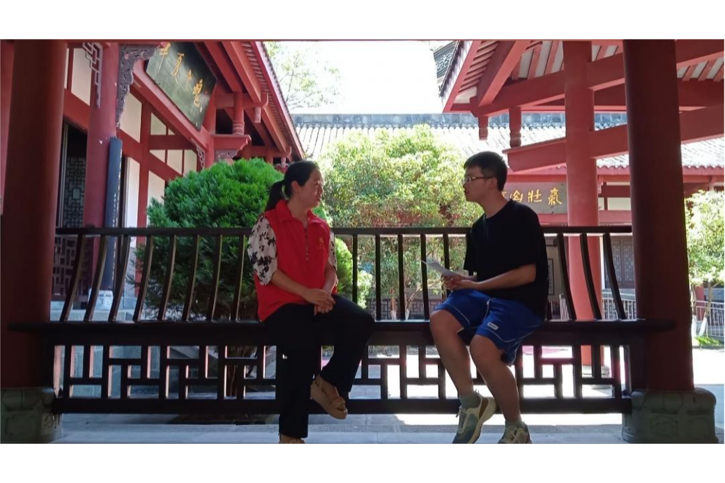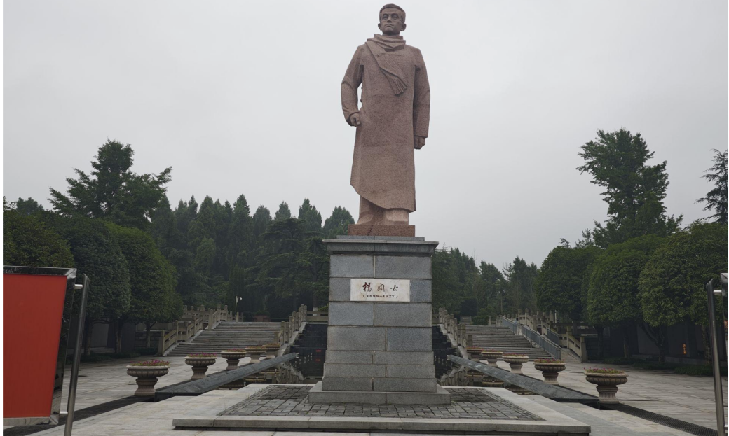 7月9日14:00,团队成员到达第二个实践地点。位于重庆市潼南区城郊尖子山的杨闇公烈士陵园,是全国重点烈士纪念建筑物保护单位和全国爱国主义教育示范基地。该陵园建成于1987年,由邓小平同志题写园名。在游园过程中,工作人员陈然首先向队员介绍了烈士陵园的基本信息。他指出,陵园在2010年改扩建后,现如今占地面积有50余亩,分为入口休憩区、办公区、瞻仰区、墓茔区、森林公园区等部分。随后陈然带领队员一路参观了“血洒佛图关”浮雕墙、杨闇公烈士生平展廊、杨闇公烈士塑像、杨闇公烈士墓茔、夫人赵宗楷墓茔、森林公园等景观。最后,在陵园北侧,团队成员和陈然共同缅怀了在全国解放战争、抗美援朝战争、对越自卫反击战等战役中牺牲的潼南籍烈士。