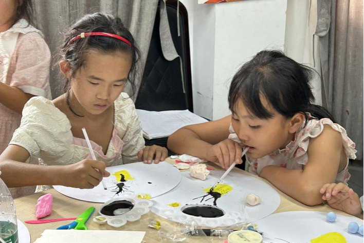 下午,志愿者相继开展音乐美术课程、防溺水宣传教育与心理健康课。音乐课程上,孩子们学唱了《小星星》和《虫儿飞》这两首经典儿歌;美术课程上,孩子们充分发挥了自己的想象力与创造力。他们有的用墨水颜料在纸上勾勒出一幅幅精美的画作,有的则用橡皮泥捏出形态各异的小动物和卡通形象;防溺水宣传教育课上,志愿者们通过生动的讲解、真实的案例以及模拟演练等方式,向孩子们传授了防溺水的相关知识和技能;心理健康课上,通过互动问答、角色扮演等形式,志愿者们引导孩子们正确认识自己的情绪与需求,学会与他人建立良好的人际关系。
