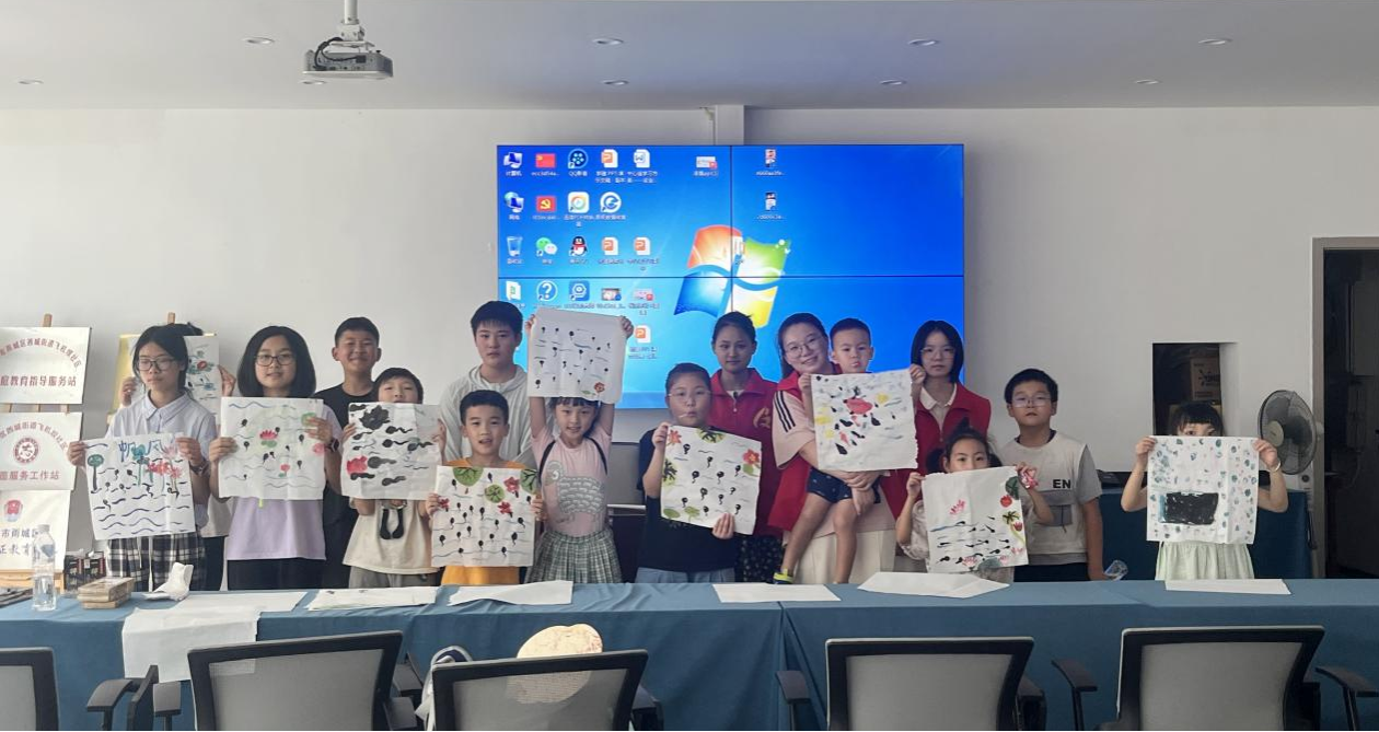 活动最后,小朋友们展示出自己的作品,并与实践团合影纪念。