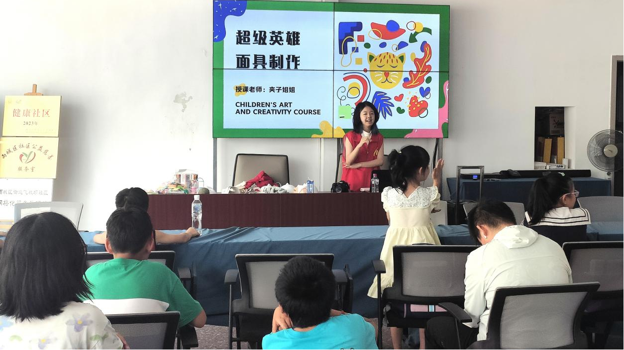 15:00,活动正式拉开帷幕。实践队成员文梦佳简要介绍了本次活动的目的和流程,强调了创意与想象的重要性,鼓励孩子们在绘制面具的过程中大胆创作,在乐趣中探索自我,勇敢表达心中的英雄梦想。