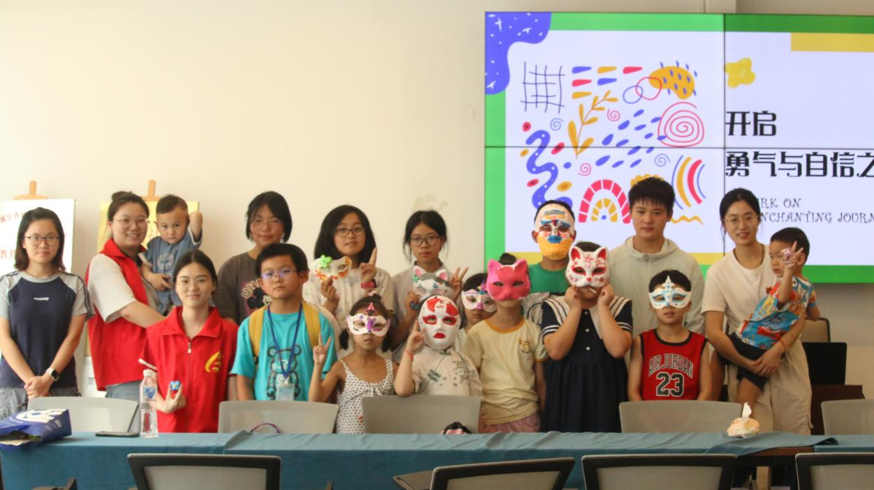 在创作过程中,实践队成员们穿梭于孩子们之间,给予适时的指导和鼓励,确保每个孩子都能享受到创作的乐趣。经过一个多小时的努力,一幅幅生动有趣、充满创意的面具作品终于完成。孩子们戴上自己亲手绘制的面具,脸上洋溢着满足与自豪的笑容,现场气氛热烈而温馨。