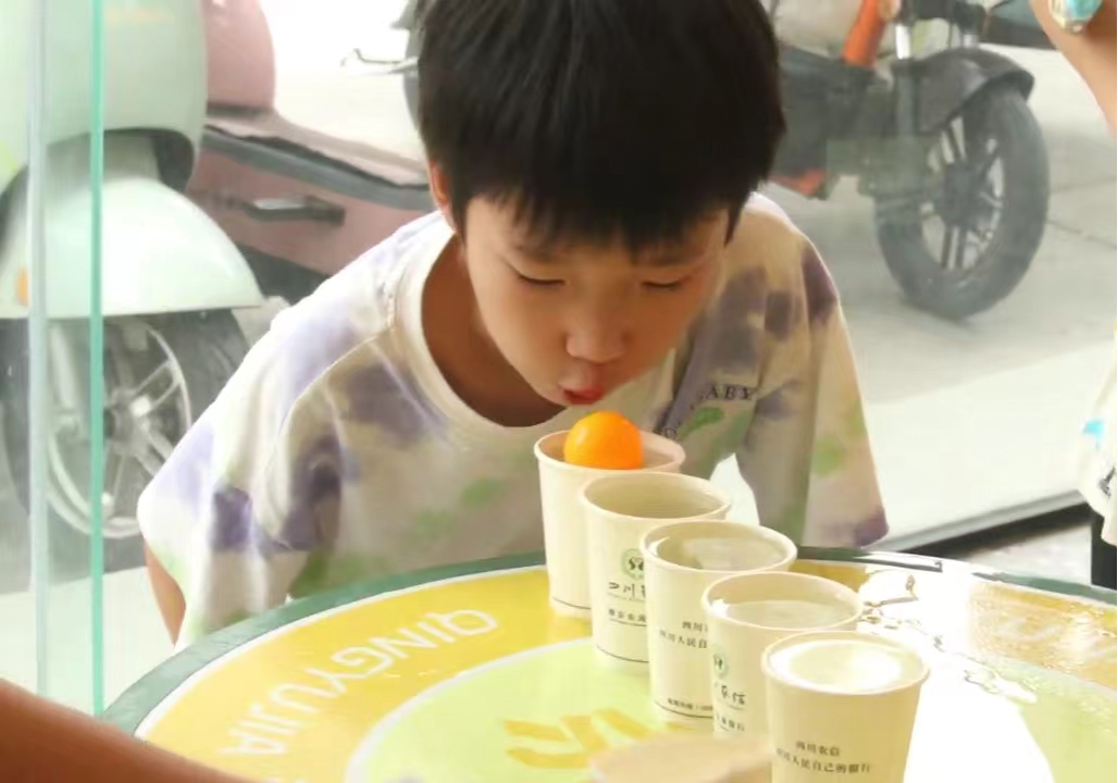 在“吹球过河”游戏中,小朋友们展现出惊人的耐心与技巧。通过控制呼吸,他们努力将漂浮在水面上的乒乓球吹入远处的容器中。每当有小朋友成功完成任务,现场都会响起热烈的掌声和欢呼声。