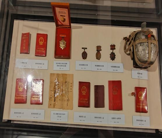 最后,展台上堤村众英雄捐赠的奖章、证书、军装、棉被等老物件深深触动了小队成员,透过这一个个“老古董”,仿佛看到了上个世纪革命先烈们的英姿。