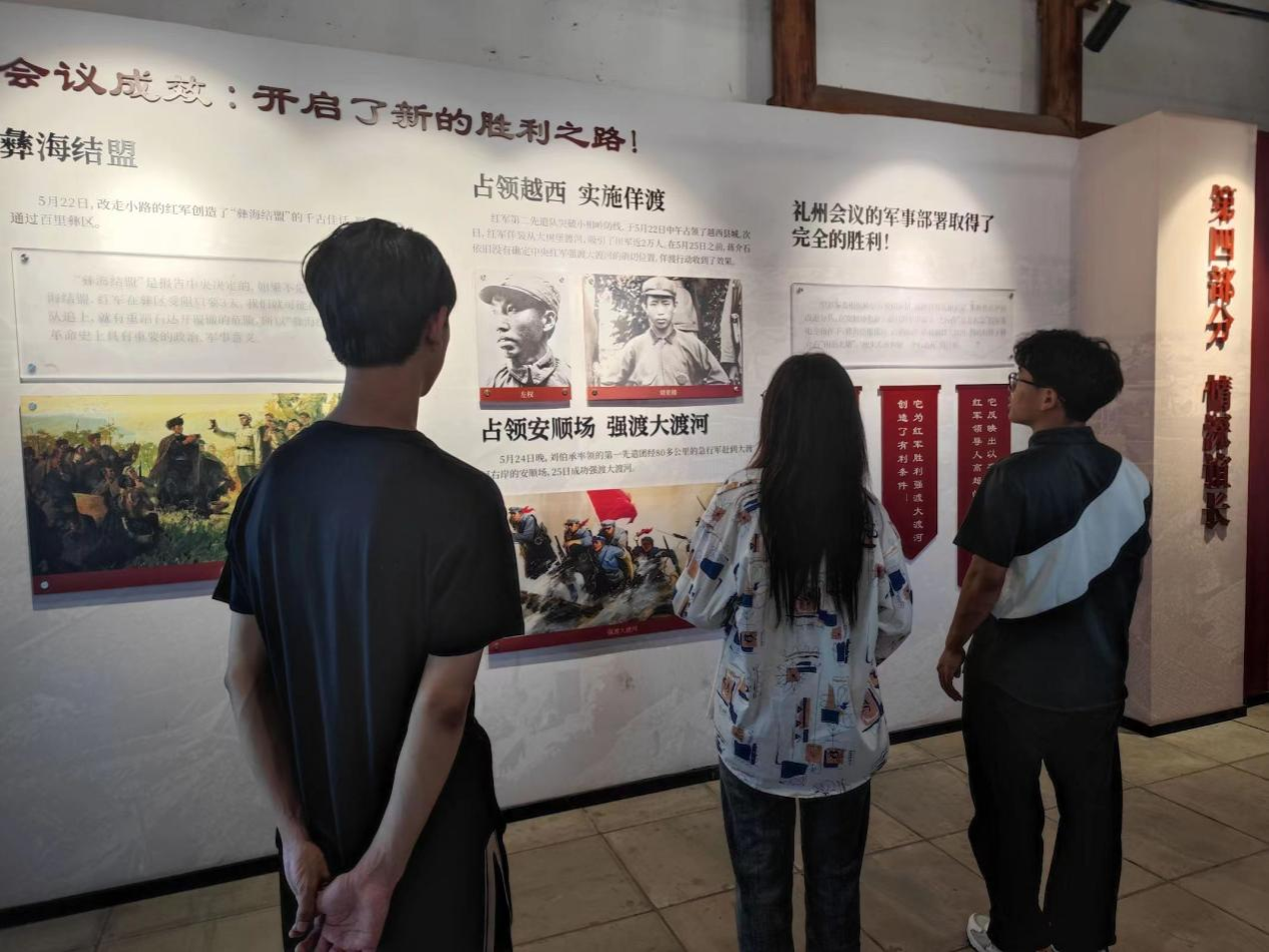 在参观中多听,感受长征之路的艰辛。14:00,小队抵达西昌市礼州镇红军广场,这里的一砖一瓦都承载着厚重的历史记忆。1935年的礼州会议,红军的坚定与智慧,通过讲解员的话语鲜活再现。纪念碑与壁画无声诉说着艰辛与荣耀,每一细节都镌刻着革命烈士的不屈意志,深深触动每位成员的心灵。