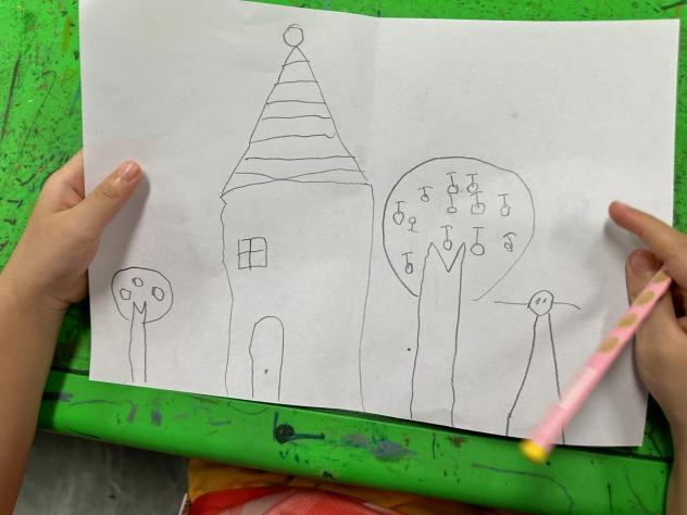 7月31日10:00,小队队员引导孩子们拿起画笔,在空白的画纸上自由创作“房树人”作品。房树人绘画测试是一种专业的非言语心理投射技术,被广泛应用于儿童心理评估领域。小队成员通过引导孩子们在空白的画布上自由创作房屋、树木、人物等象征性图像,揭示并理解孩子们内心深处的情感世界、家庭关系认知、情绪状态波动以及对未来生活的美好愿景。在提前认真学习相关知识后,小队成员全程陪伴孩子们完成创作过程,耐心解答疑惑,同时细心观察每一幅作品的细节,捕捉孩子们微妙的心理变化。在小队成员的悉心引导下,小朋友们都完成了属于自己的独特画作。这些作品不仅展现了孩子们的艺术天赋和想象力,更深刻地反映了他们内心的真实感受和对生活的独特理解。