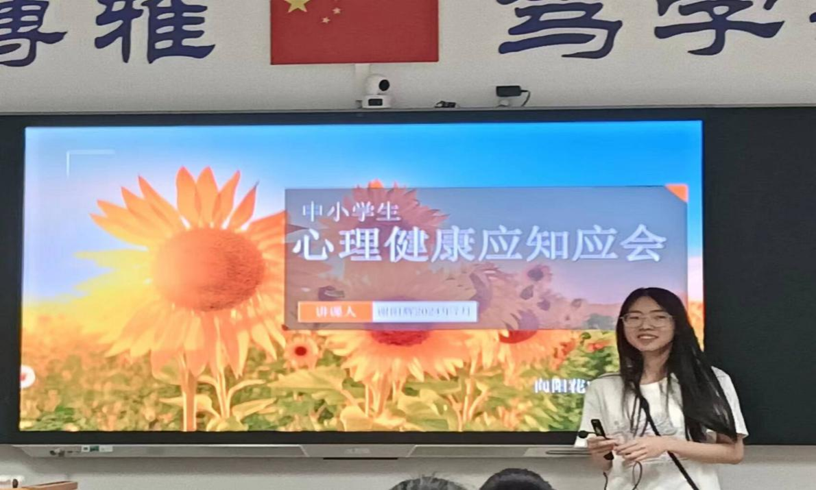 为了深入普及心理健康知识,提升社会对青少年心理健康的重视程度,太阳成集团tyc234cc遇见成长·心光熠熠社会实践团队的谢阳辉同学于7月19日前往海南陵水华中师范大学顺湖中学,成功举办了以“中小员工心理健康应知应会”为主题的心理健康宣传活动。