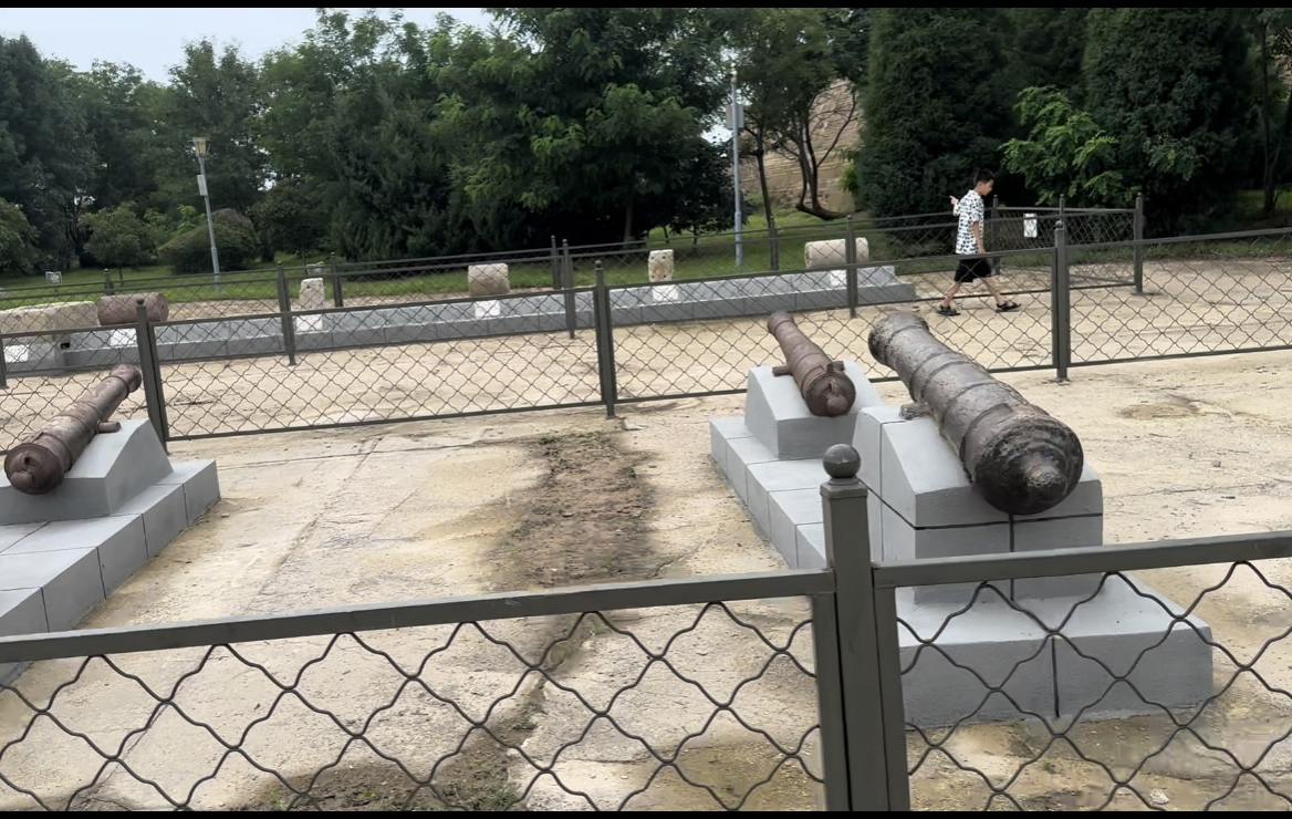 7 月 30 日9:00,团队到达营口西炮台。在讲解员刘子毅的引领下,团队成员依次参观了西炮台的各个区域。走进西炮台遗址,首先映入眼帘的是其独特的建筑风格。整个炮台呈“凸”字形布局,由护台河、围墙、炮台等建筑组成。炮台共有三座,一大二小,周围筑有坚固的围墙,墙下还设有暗炮洞。通过游览,队员们深刻感受到了古代军事防御的智慧与匠心。古老的城墙、斑驳的炮台、锈迹斑斑的武器,仿佛在诉说着往昔的峥嵘。每一处遗迹都勾起了人们对于那段浴血奋战历史的回忆,让大家深刻感受到了先辈们为保卫家园所做出的巨大牺牲和不懈努力。