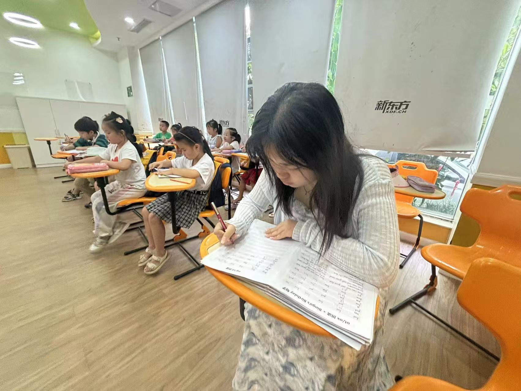 7月15日至8月13日,小队成员李思慧则前往新东方教育培训机构进行实习。她的实习内容包括:记录与反馈课堂内容、及时向家长反馈员工学习状况、解答家长疑惑、批改作业、维护课堂秩序等。通过这段时间的社会实践,李思慧不仅提升了自己的沟通能力、组织能力和领导能力,也对教师这一职业有了全新的认识。她感慨道:“当你真正站在讲台上,面对一群充满好奇心的孩子时,你才会真正明白,教育不仅仅是传授知识,更是责任与爱的传递。”