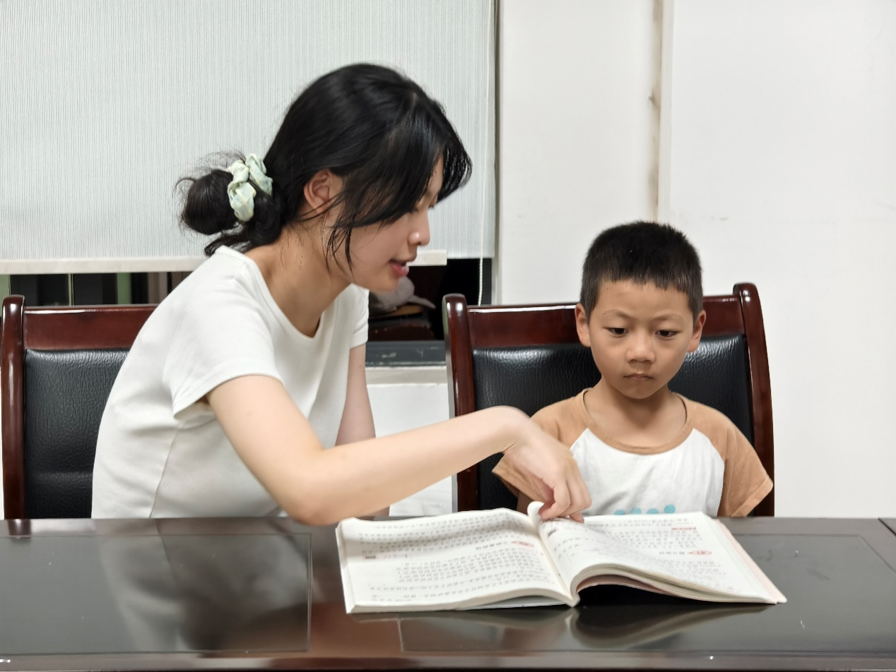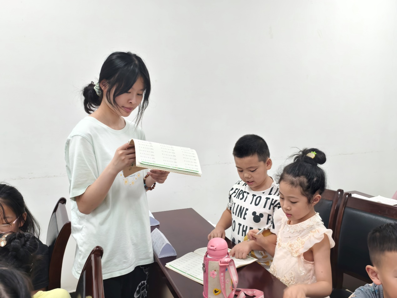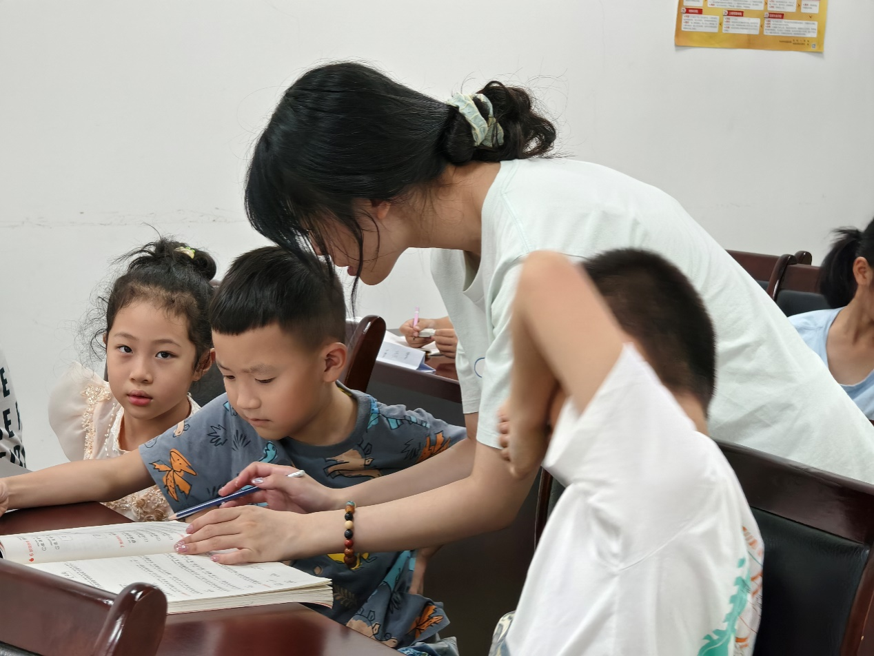 活动伊始,志愿者们清点小朋友的人数,并及时联系缺席者的家长,确保每个小朋友安全到达社区学习中心。接着,他们引导小朋友安静自觉地完成作业,营造良好的学习氛围,培养小朋友的自主学习能力。在此过程中,小队成员耐心地用易于理解的方式解答小朋友在学习上的问题,引导他们提升思维能力,帮助他们独立完成作业。志愿者们在检查完作业后,带领小朋友们阅读书籍,拓展知识面。