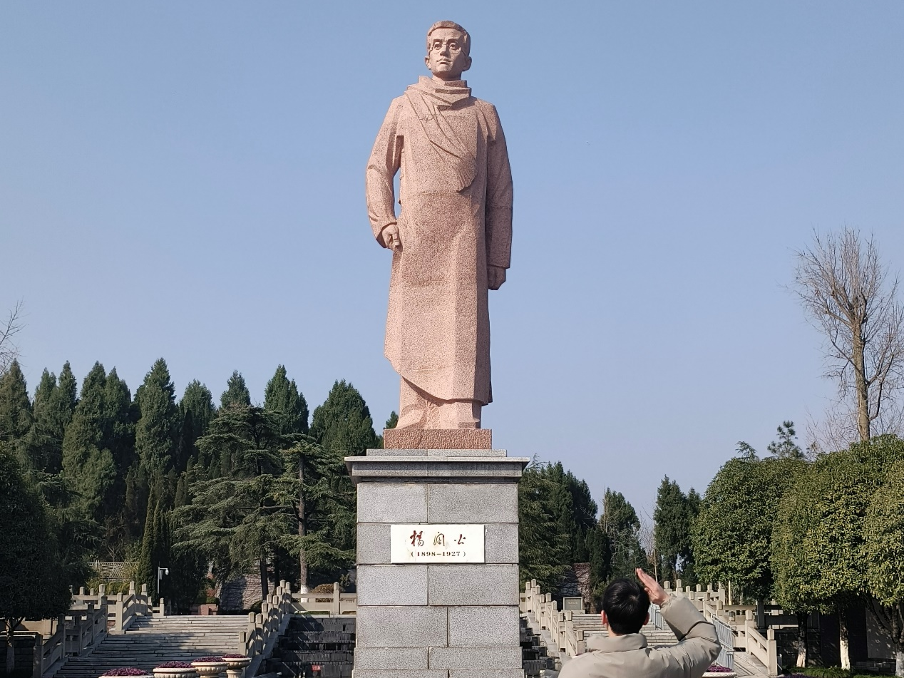 随后,队员们来到杨闇公的雕像前,向这位革命先辈庄严敬礼。杨闇公与朱德、刘伯承等同志一道,为四川的建党建团、国共合作、反帝反军阀等工作倾注了心血,做出了卓越的贡献。他在1927年“3.31”惨案中壮烈牺牲,为共产主义事业奋斗终身,献出了宝贵的生命。他不仅是革命的英雄,更是人民心中的英雄,他的光荣事迹将永远铭刻在这片红色大地上,受到后人敬仰。