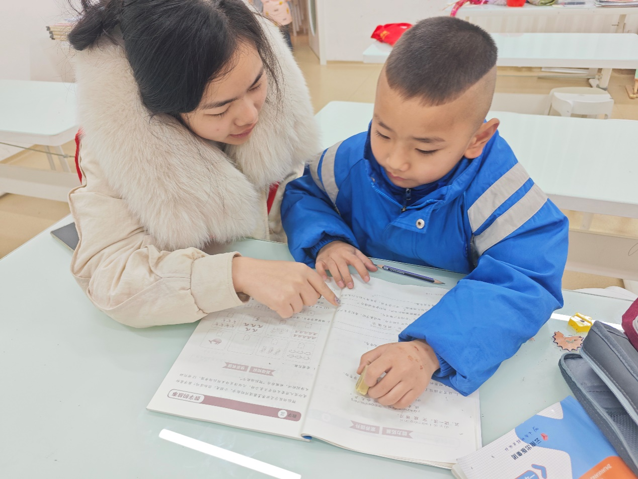 完成心理健康课程后,小队成员张欣迅速变身为“学习小助手”,开启作业辅导模式。她耐心地为孩子们解答数学难题、指导语文写作,纠正英语发音。遇到理解问题稍显缓慢的孩子,她不厌其烦地换种方式讲解,直到孩子们完全掌握。在辅导过程中,张欣注重培养孩子们的学习方法和思维能力,鼓励他们独立思考,激发学习兴趣。