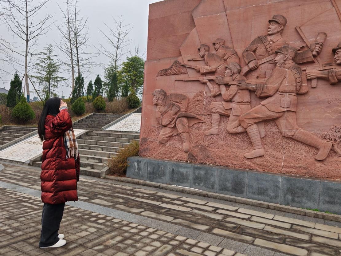 1月17日14:00,团队成员们在工作人员的带领下,登上台阶参观学习。安岳烈士陵园根据中国近代历史背景,以时序为经、史实为纬,扼要安岳革命发展脉络、英烈人物代表、史实典型事件,凝聚缅怀革命先烈、铭记光辉党史、砥砺奋进的精神,表达对革命先烈崇高的敬意,永远怀念、牢记先烈,传承红色基因。陵园内松柏苍翠,每一处石碑上的红色故事和革命先烈们的生平事迹都在诉说着那段烽火连天的岁月,深深震撼了每一位成员。