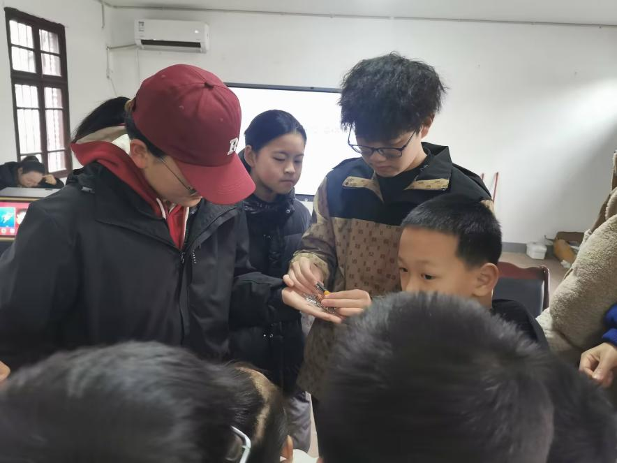 首先,实践队员们围绕“奇妙的电”相关知识讲解以及小实验展开课堂。团队成员克服艰苦条件,从基础学科入手,为不同年级孩子量身定制课程。在富有趣味实验课上,简单的物理实验引得孩子们阵阵惊叹,点燃了他们对科学的热爱。