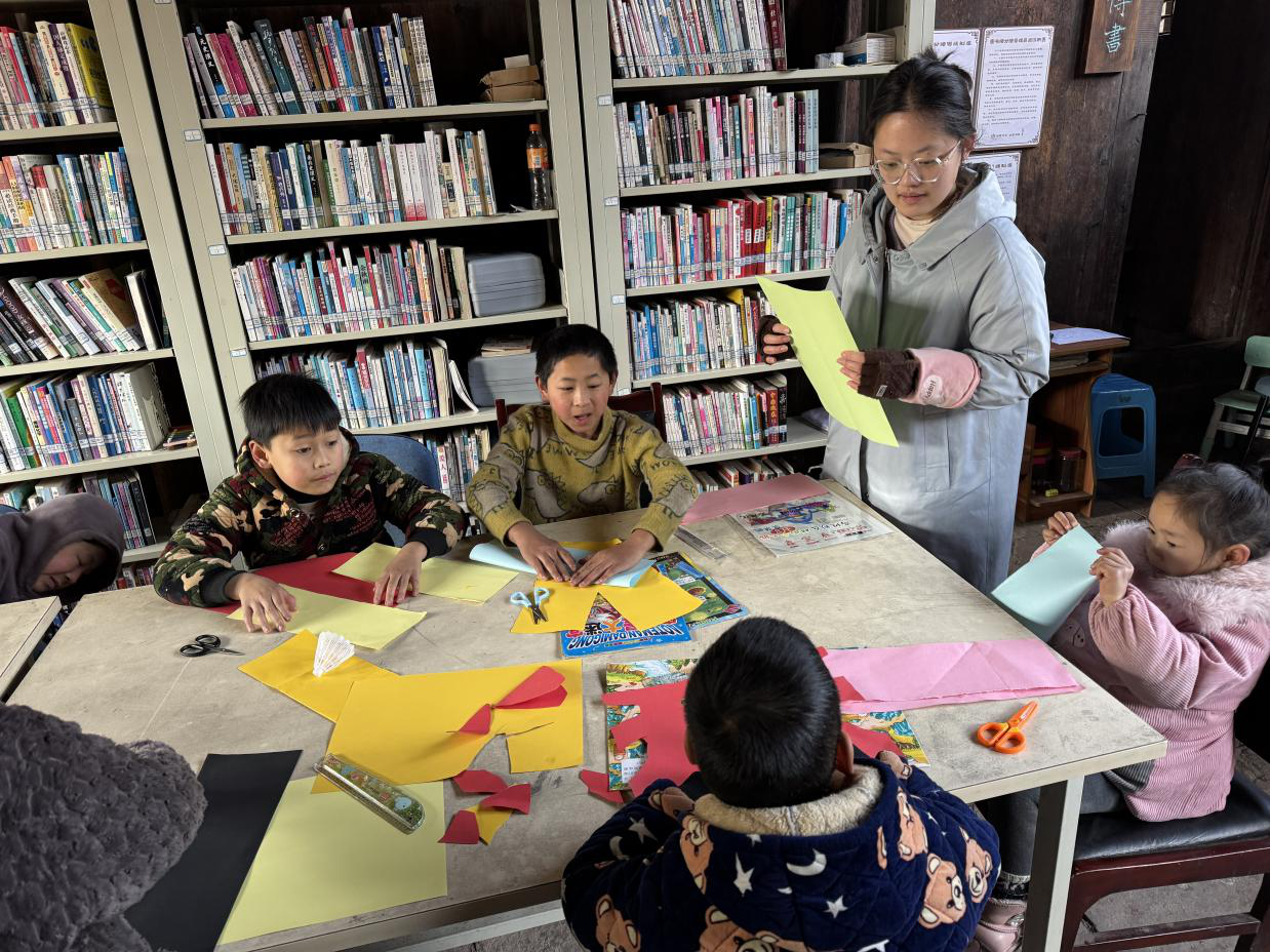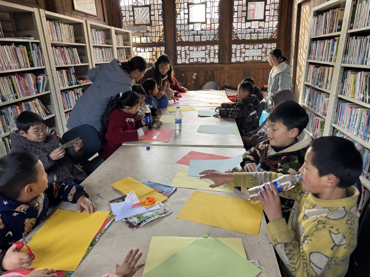 其中一位队员表示:“今天是开营第四天。今天上午的课是手工活动,内容是制作回旋镖。活动过程中我们在主讲人张越琪和文化站杨老师的指导下,带领冬令营小朋友们在阅览室里做准备活动分发手工材料。”