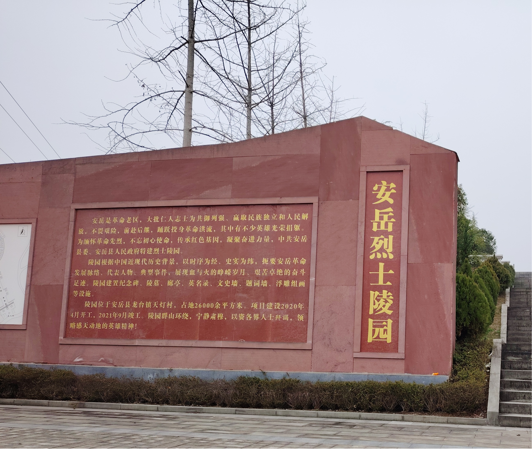 安岳烈士陵园始建于2020年,历经多次修缮与扩建,如今已成为当地重要的爱国主义教育基地,承载着安岳人民对先烈的缅怀之情。在抗日战争、解放战争等波澜壮阔的历史进程中,无数安岳儿女投身革命浪潮,他们在这片土地上浴血奋战,用生命捍卫民族尊严,安岳烈士陵园的建造便是为了纪念这些英雄烈士。