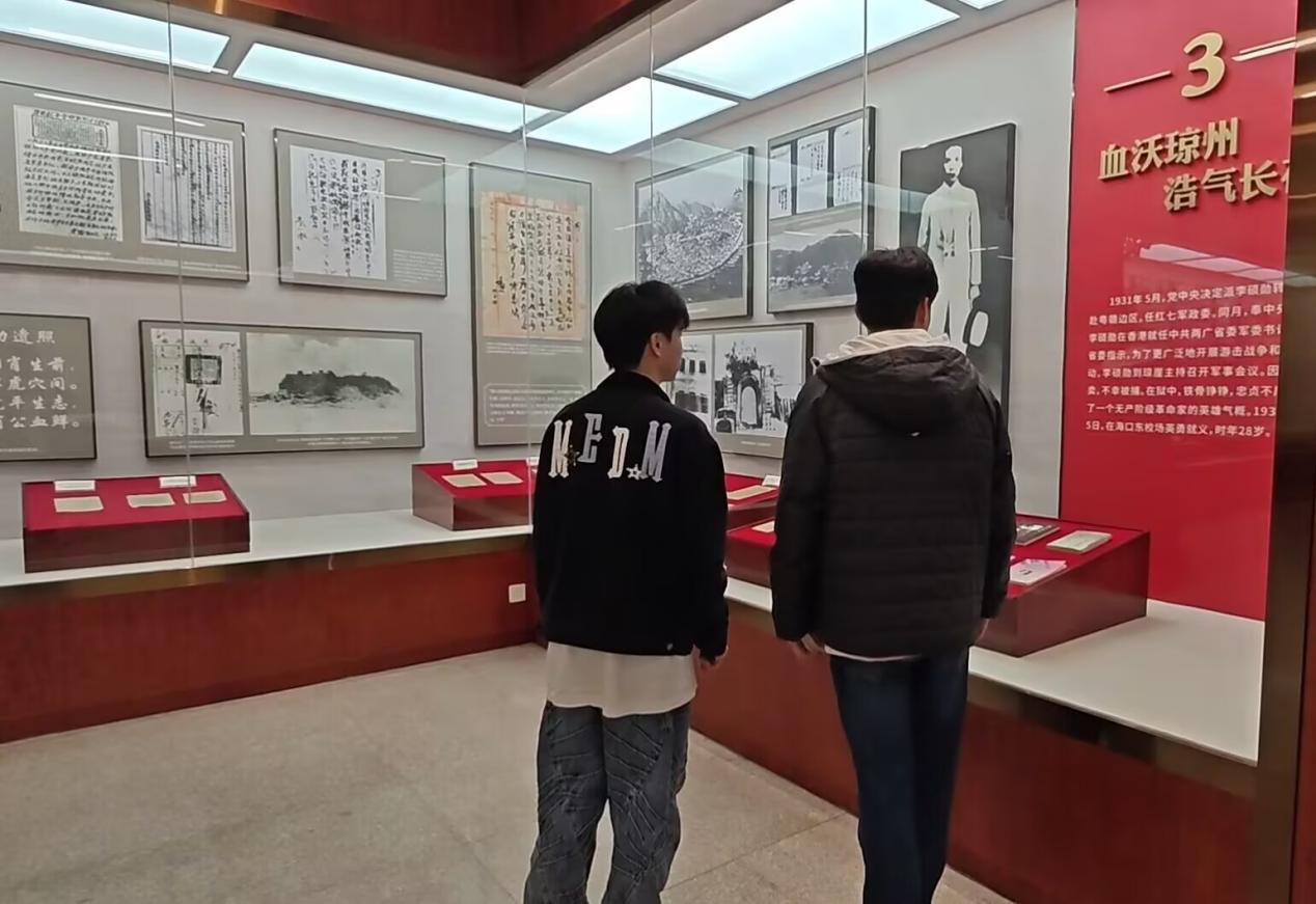 实践队首站来到海口李硕勋烈士纪念亭。纪念亭庄重古朴,亭内陈列的历史图片与文物生动展现了李硕勋烈士短暂而光辉的一生。作为中共早期军事斗争的先驱,他在28岁时为革命英勇就义的事迹令队员们深受震撼。