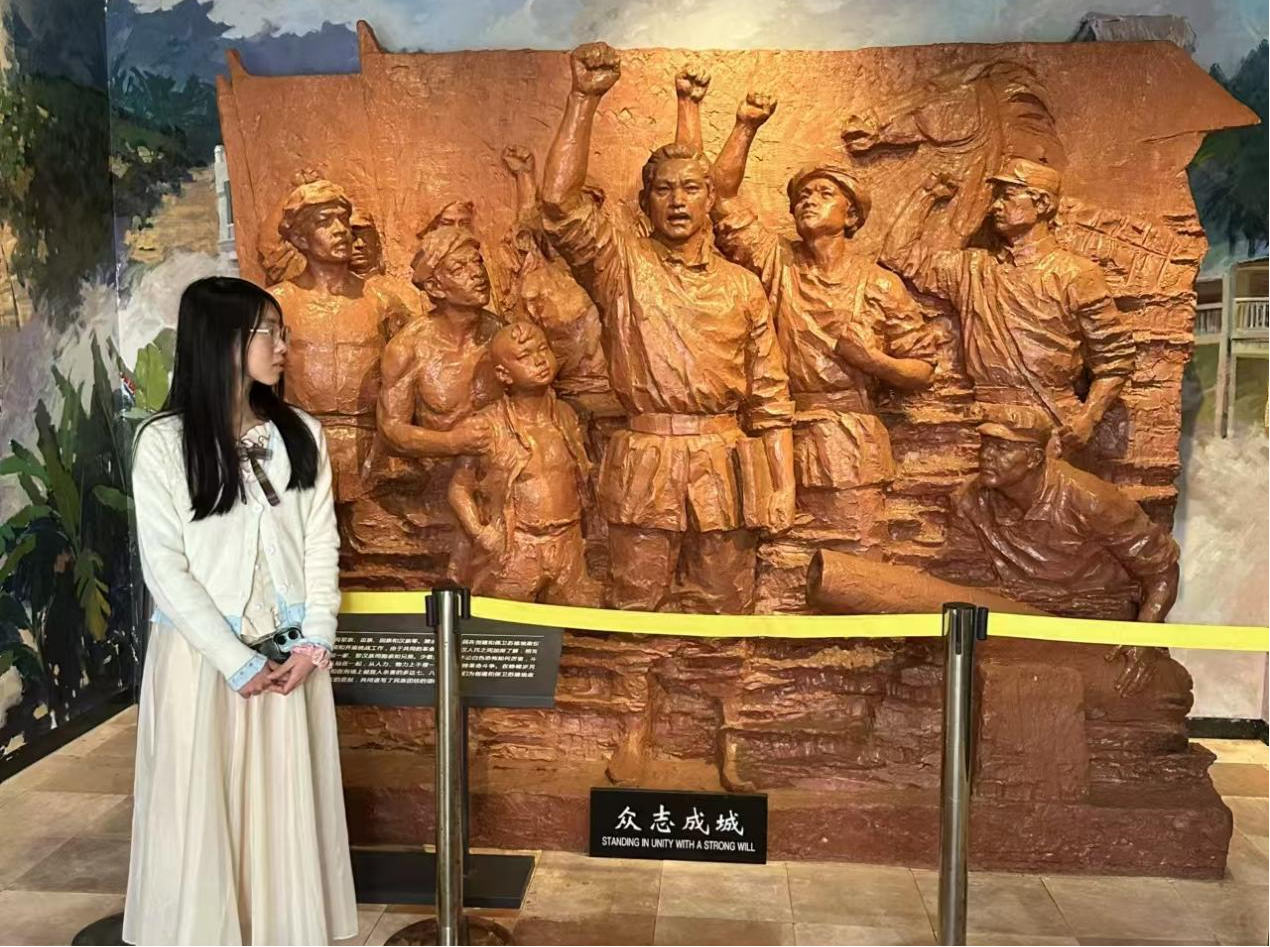 走进展馆,成员们首先参观了其独特的建筑风格。这座建筑融合了中西元素,透露出岁月的沧桑与历史的厚重。展馆内,通过一幅幅珍贵的历史照片、一件件饱经风霜的革命文物,成员们可以看见陵水县苏维埃政府成立的光辉历程以及它在琼崖革命中的重要地位。展品中,有当年革命先辈们使用过的号角、枪支、文件等实物,每一件都承载着厚重的历史记忆,让人不禁肃然起敬。