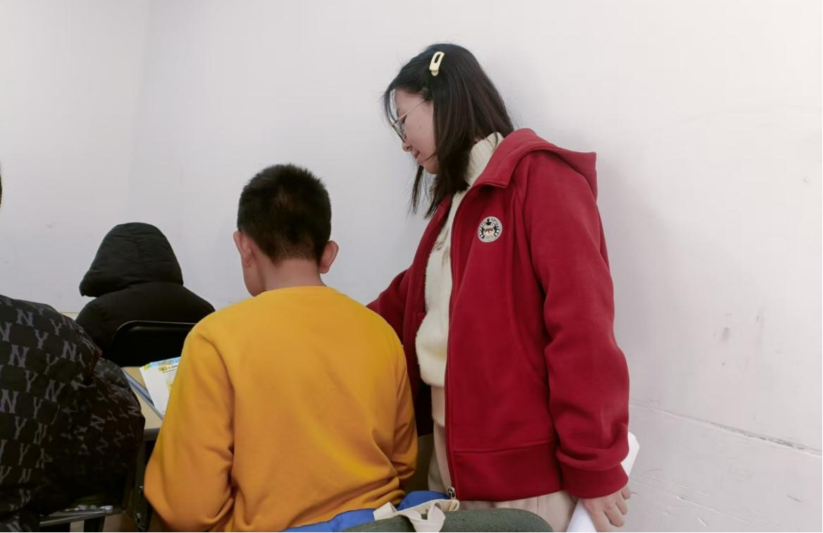 除了日常教学,队员还特别关注每个孩子的学习进度和心理状态。特别是基础较弱的孩子,队员利用课余时间进行一对一辅导,耐心解答他们的疑惑,增强他们的学习信心。