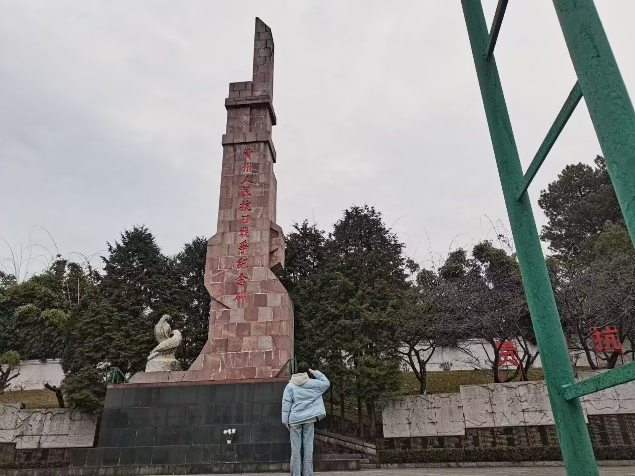 贵州人民抗日战争纪念碑位于贵州省贵阳市。在红色大理石砌筑的碑体上,镌刻着秦天真题写的“贵州人民抗日战争纪念碑”11个鲜红的大字。2月17日上午,实践队员前往贵州人民抗日战争纪念碑展开实地调研。瞻仰刻满了英雄名字的石壁,队员们良久伫立为烈士默哀。最后,队员们也发布了线上问卷,收集当地群众对贵州人民抗日战争纪念碑的认知、参观感受等信息。这次贵州人民抗日战争纪念碑之行,让小队队员深刻认识到了铭记历史的重要性。历史是一面镜子,它能够让人们看清过去的辉煌与沧桑,也能够从中汲取智慧和力量。