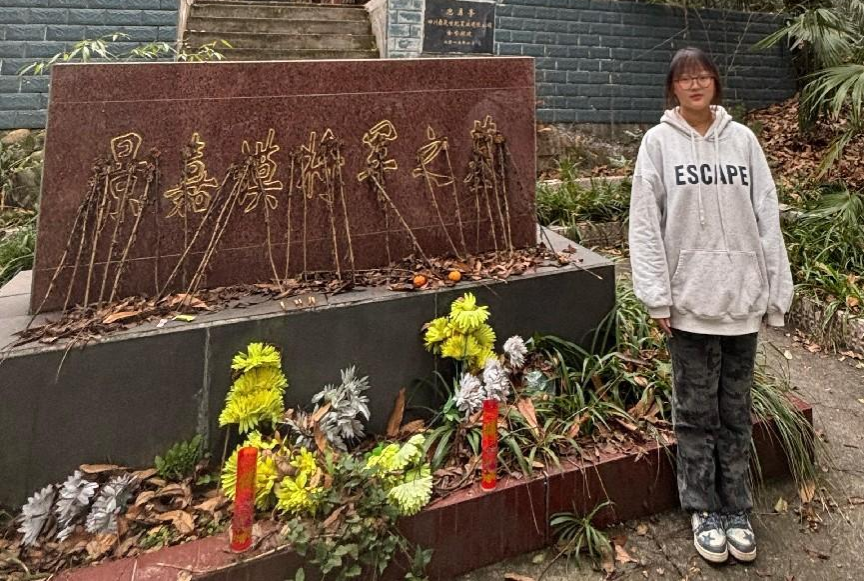 队员羊亭鲜抵达目的地后,首先映入她眼帘的是景嘉谟将军的墓碑。墓碑上清晰地刻有景嘉谟将军的姓名、生平事迹等内容,详细地记录了将军为国家和民族所做出的贡献。墓碑两侧的川军阵亡将士名录墙格外引人注目,上面镌刻着963位三台抗日阵亡将士的名字。这些名字背后,是一个个鲜活的生命,他们在抗战时期挺身而出,为保卫祖国、抵御外敌献出了宝贵的生命。