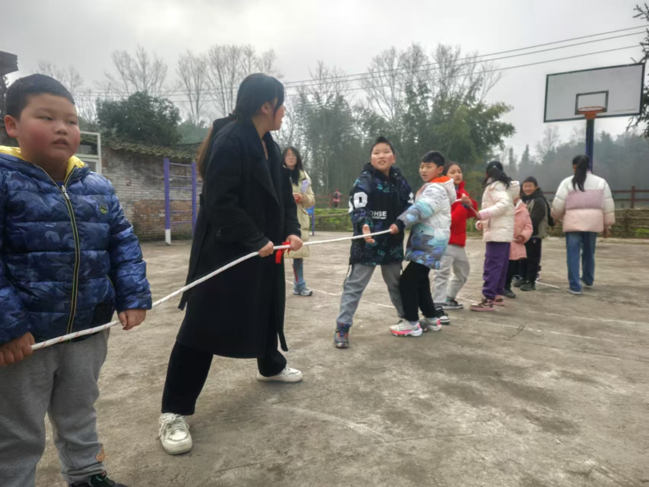 首先,红岩冬梦飞翔团队成员带领小员工们举办了一场趣味运动会。其中,拔河比赛最为激烈。孩子们在操场上齐心协力,紧握手中的拔河绳,呐喊声、加油声此起彼伏。团队成员们担任裁判的角色,在一旁指导,同时为孩子们加油鼓劲。这次活动在寒冷的冬风中举办,不仅坚持了五育并举的教育观念,更锻炼了孩子们的身体,培养了他们的团队协作精神。