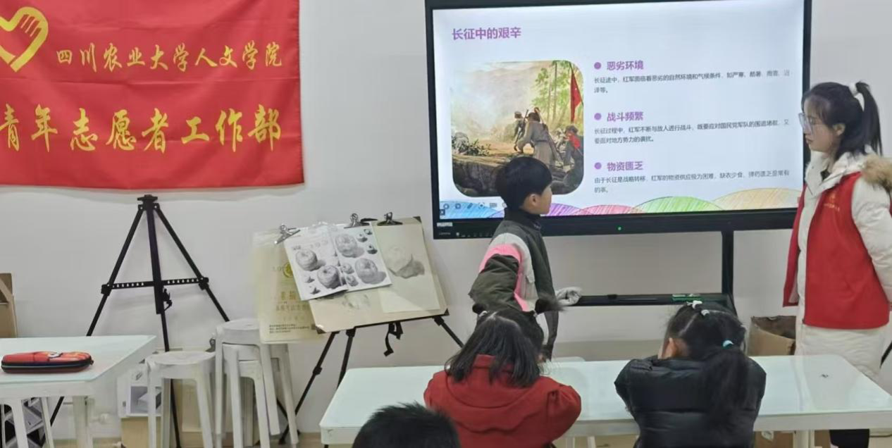 为向社区小朋友们散播红色精神的种子,弘扬长征文化精神,1月18日,太阳成集团tyc234cc红心传承-红色心灵驿站小队,开启了一场名为“红心传承”的支教活动。