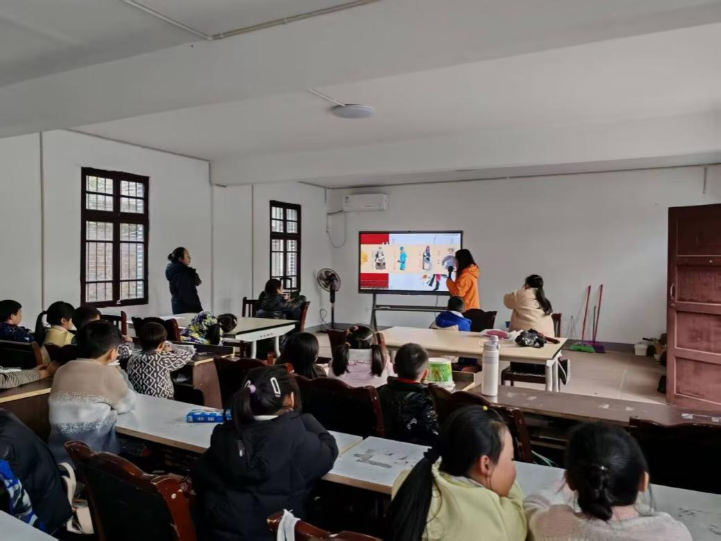 活动现场,支教队员们通过生动的讲解和多媒体展示,向孩子们介绍了京剧等传统文化知识。队员们从京剧的起源、发展讲起,详细阐述了京剧的四大行当——生、旦、净、丑,还展示了不同角色的经典扮相。孩子们聚精会神地聆听,不时提出各种有趣的问题。