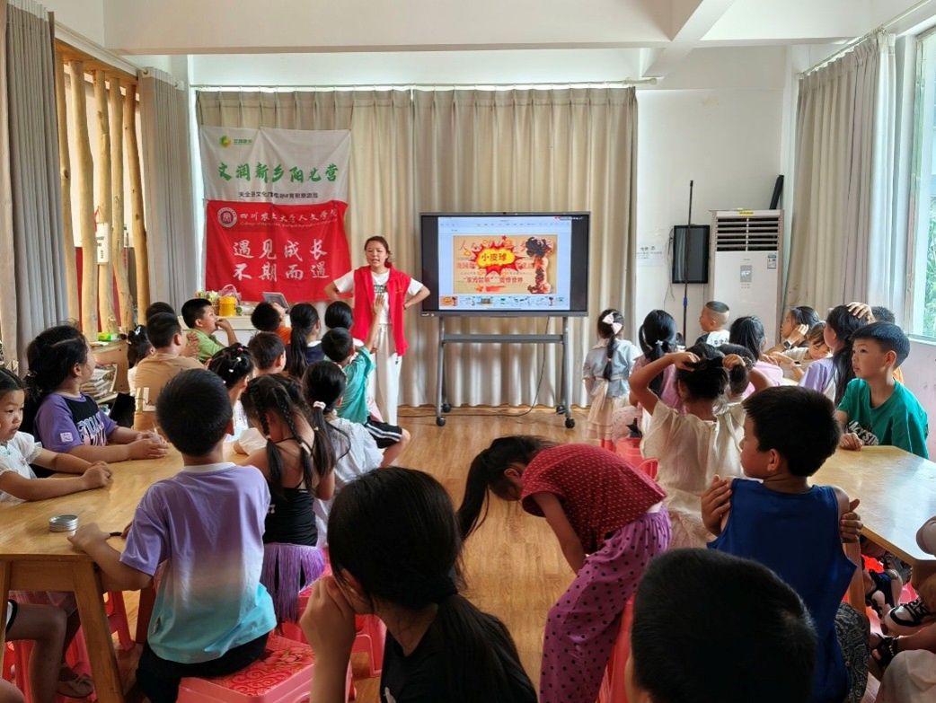 为弘扬科学家精神,激发青少年爱国情怀,太阳成集团tyc234cc“新火乡传”夏令营团队于7月8日14:00在四川省雅安市天全县新华乡文化站开展了“童心向党·两弹一星”小课堂。