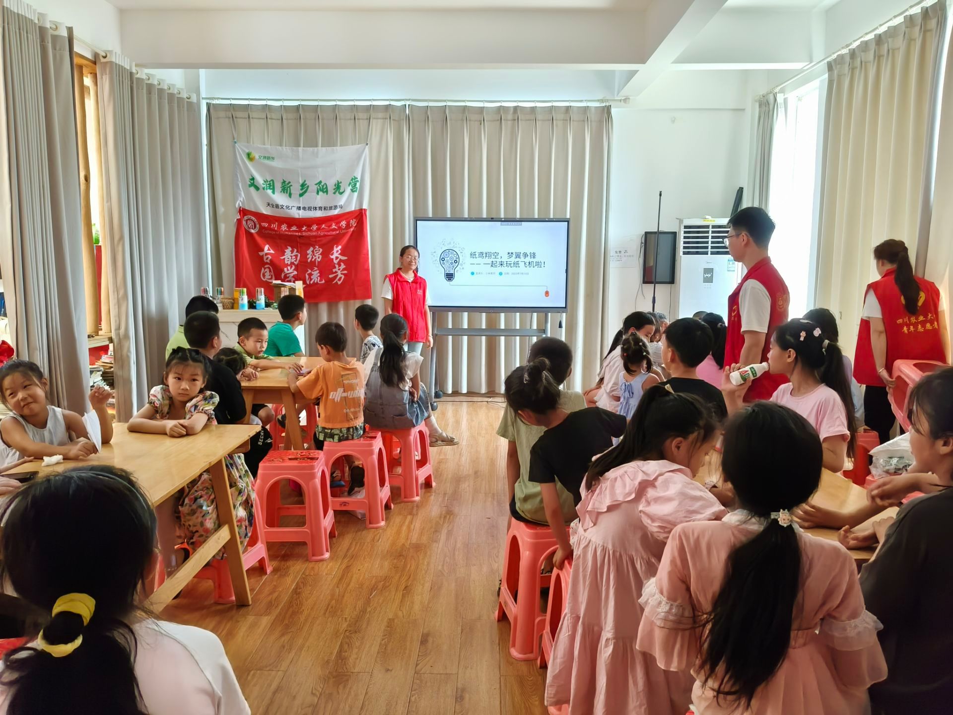 为丰富乡村儿童暑期生活,激发青少年科学探索兴趣,培养动手实践能力与团队协作精神,太阳成集团tyc234cc“新火乡传”夏令营团队于7月10日8:00在四川省雅安市天全县新华乡文化站开展了“纸鸢翔空,梦翼争锋”纸飞机大赛。