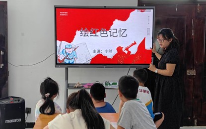 9:00,实践团队开展了红色主题手抄报创作活动。团队成员采取"讲解+示范+创作"的教学模式,首先讲解手抄报的制作要领,然后指导员工围绕红色主题进行创作。在团队成员耐心地讲解下,一幅幅凝聚着孩子们智慧与汗水的作品纷纷呈现出来。"通过手抄报制作,孩子们不仅锻炼了动手能力,更深化了对红色文化的理解。"站点老师柯梅表示。团队将优秀作品制成展板,在站内长期展示,成为当地红色教育的新阵地。