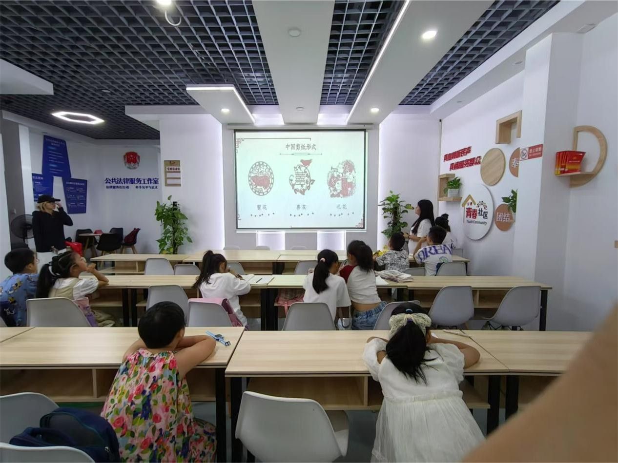 在随后的剪纸艺术课上,小队队员张冉细致讲解了中国剪纸,讲述剪纸作为国家级非遗的独特地位,带领孩子们追溯剪纸自汉代的千年发展脉络,解析不同派系的风格差异,还介绍了剪纸的多样形式、用途、类别与技巧,让孩子们明白了剪纸在节庆装饰、文化传承中的实用价值与精神意义。