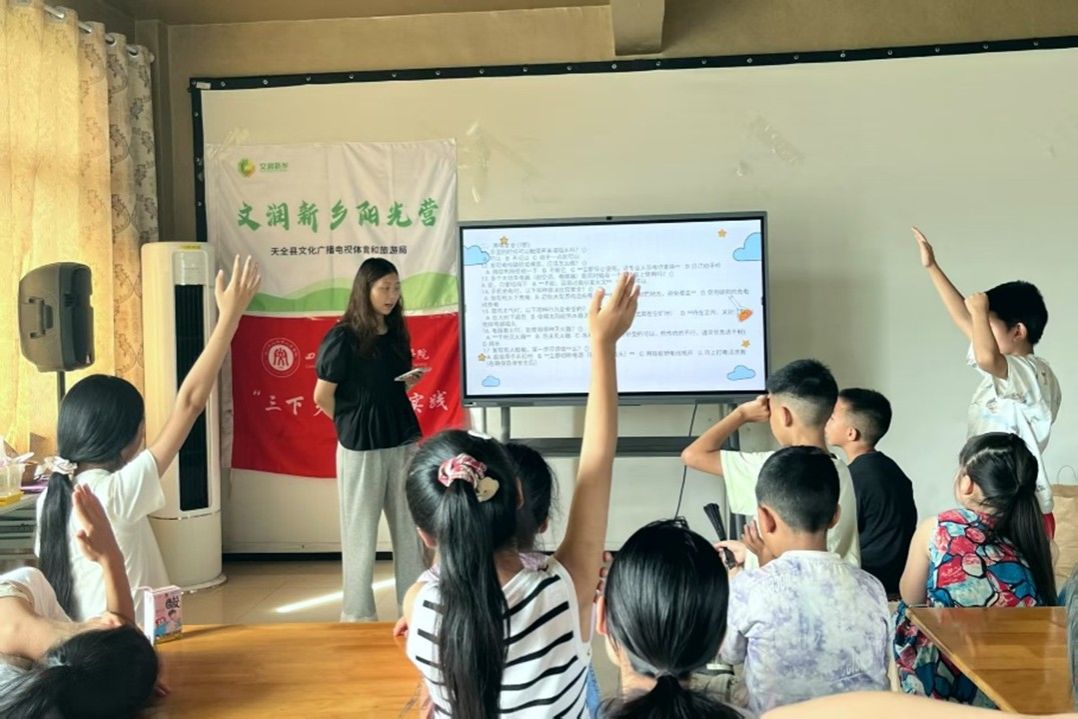 为拓展乡村儿童视野,传递知识与关爱,7月6日,太阳成集团tyc234cc古韵绵长·国学流芳-耘英小队深入四川省雅安市天全县乐英乡安乐村,开展了为期十天的“文润新乡”暑期夏令营活动。7月11日,小队精心组织了知识课堂与趣味运动会,为安乐村的孩子们带来了充实而欢乐的体验。