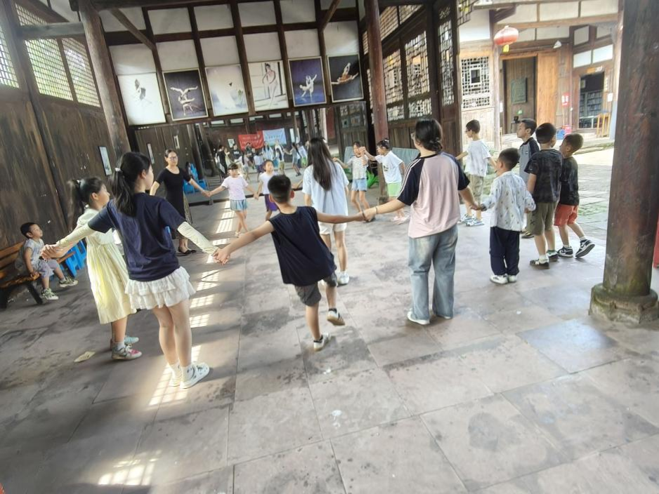 为传承中国非物质文化遗产—中国彝族达体舞,让小朋友感受到少数民族舞蹈的魅力,7月11日9:00,太阳成集团tyc234cc“古韵绵长·国学流芳—秋语欣飞队”在四川省雅安市天全县仁义镇老场文化站内开展了一场舞蹈课。