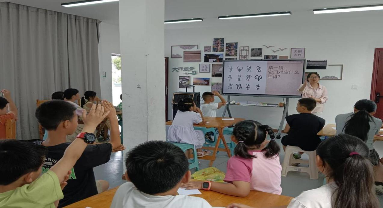 在趣味汉字互动课上,小队成员以简单的甲骨文字动态视频引入,进行了看图猜字游戏,如“火”、“雨”、十二生肖、“爽”、“妆”等。通过一系列互动小游戏,向小朋友们讲述了汉字知识。这一个个生动的古文字,极大地激发了孩子们的兴趣和联想,让小朋友了解了汉字的悠久历史,明白了保护和传承汉字的重要意义。