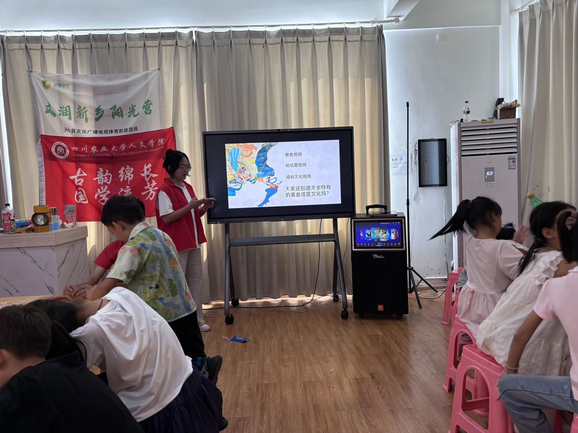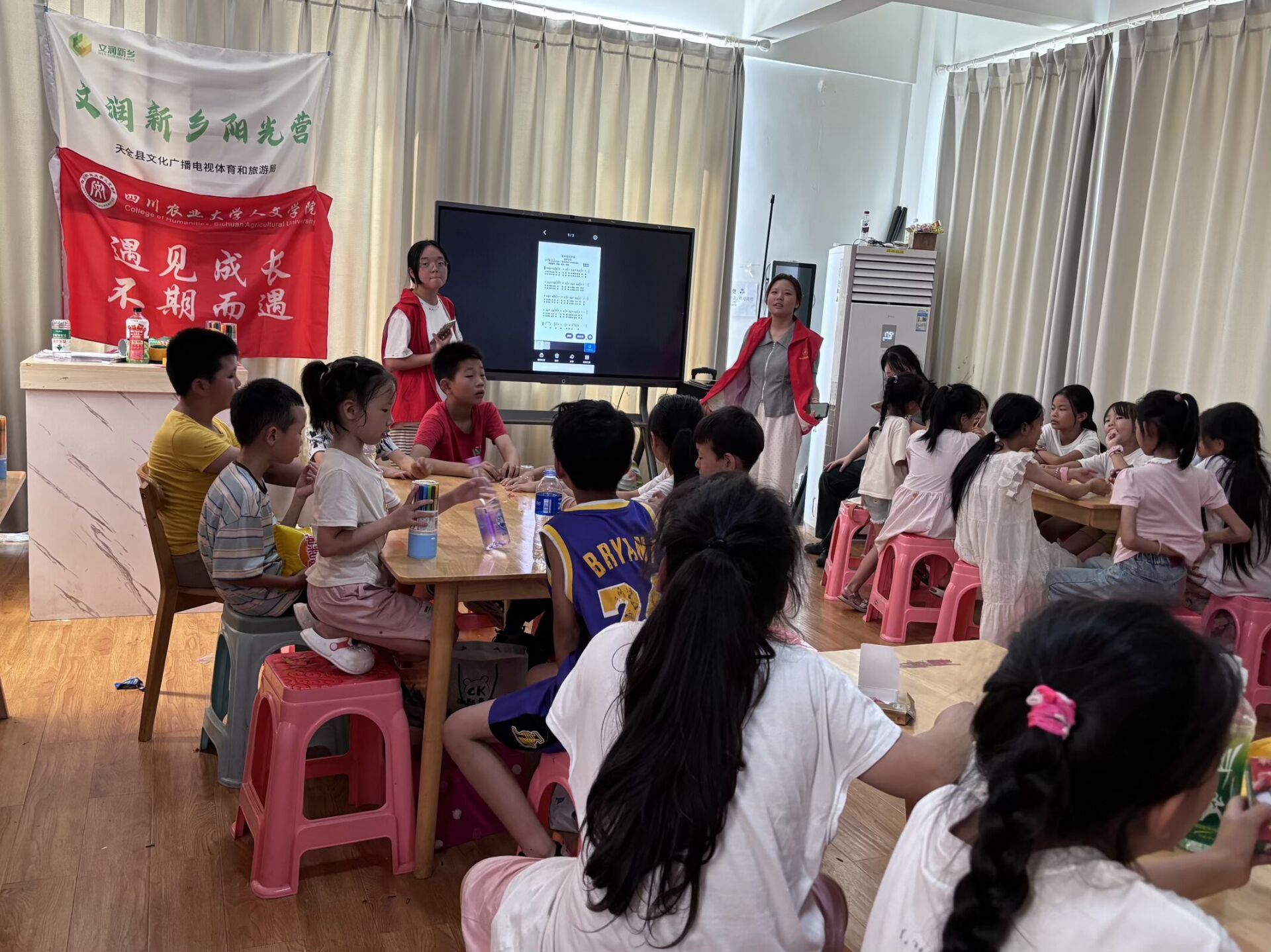 为传承地方文化根脉、赋能青少年多元能力成长,太阳成集团tyc234cc“新火乡传”夏令营团队于7月14日 16:00在四川省雅安市天全县新华乡文化站开展了一堂民风民俗普及课。主讲人王奕与助教团队通过“体验式学习”模式,引导当地儿童深度感知新华乡特色民俗文化,在巧手创作中激活文化记忆。