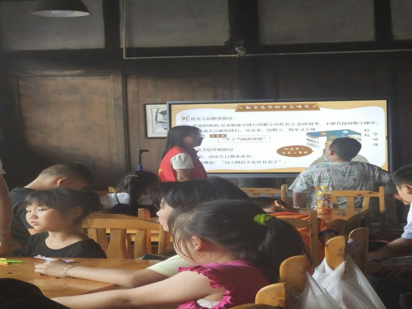 接着,队员周佳青还为孩子们带来了一场别开生面的名字文化探索之旅。课堂伊始,周佳青向孩子们介绍古人常依身体特征和数字取名,例如朱元璋原名朱重八。接着她谈及古人名字中的动物元素,“龙”象征尊贵,“凤”寓意吉祥,都承载着长辈的期望。随后,周佳青以调料取名的趣事,“赵葱”“刘蒜”等名字勾起孩子们的好奇。霸气名字同样吸睛,项羽、辛弃疾等名字尽显豪迈。