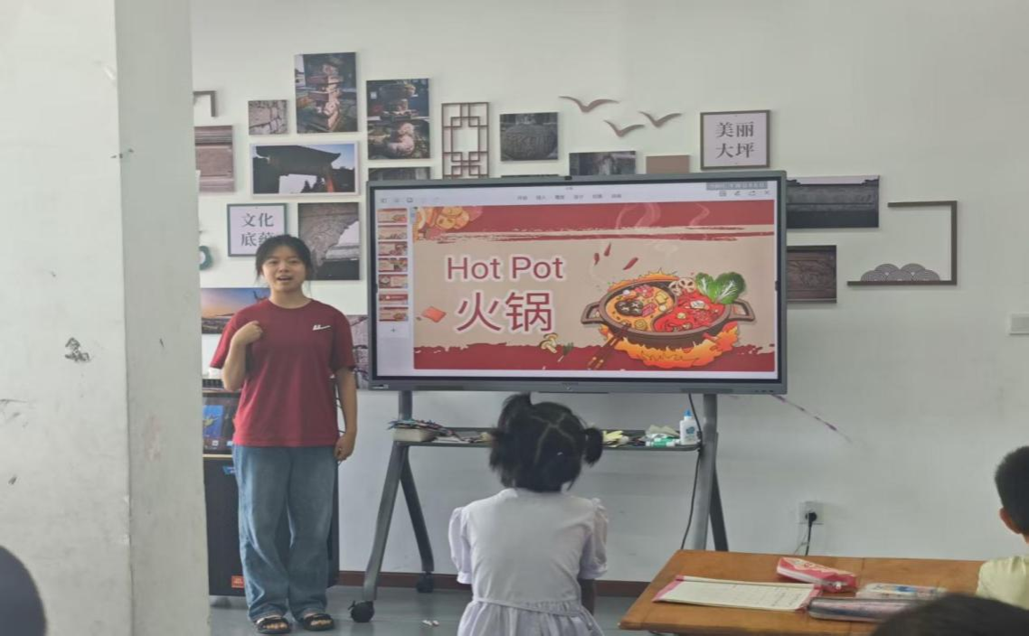 下午是趣味文化课,队员与孩子们共同了解了作为中华传统美食之一的火锅。课堂在活跃的氛围中有序进行,志愿者简单介绍了火锅的来源和发展,随后向孩子们提问有关火锅的多重口味和食材,以互动的方式介绍不同地域的火锅类型和特点。最后,孩子们与队员一起开展“火锅里面有什么”的趣味游戏,课堂在一片欢声笑语中结束,孩子们对火锅有了深刻的印象,也对中华传统美食有了崭新的了解。