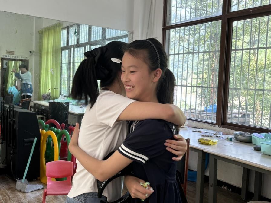 随着游戏的结束,告别的情绪悄然漫开。小朋友们纷纷主动拥抱小队队员,悄悄红了眼眶。这些紧紧的拥抱,藏着十余天相处的依赖与牵挂,队员们回抱的手,也传递着“不说再见”的约定,让离别多了份温暖的重量。