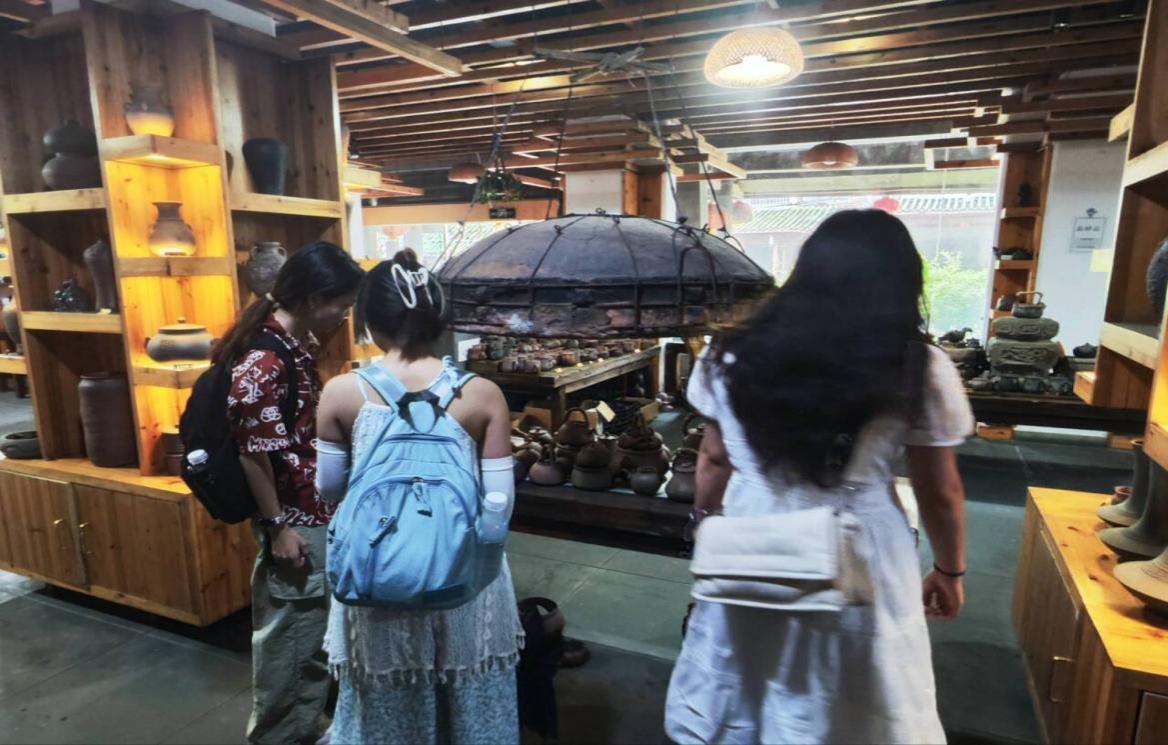 探访伊始,小队成员沿着古城村的坊间道路,走进了黑砂博物馆。博物馆内,一件件古朴而精美的黑砂制品静静陈列,仿佛在诉说过往的故事。从古老的砂锅、砂罐,到现代的工艺品,每一件作品都凝聚着匠人的心血与智慧。随后小队成员了解到,黑砂制品的古法制作工艺,从选料到烧制,每一道工序都需要匠人精心操作,这也正体现了传承下来的工匠精神。