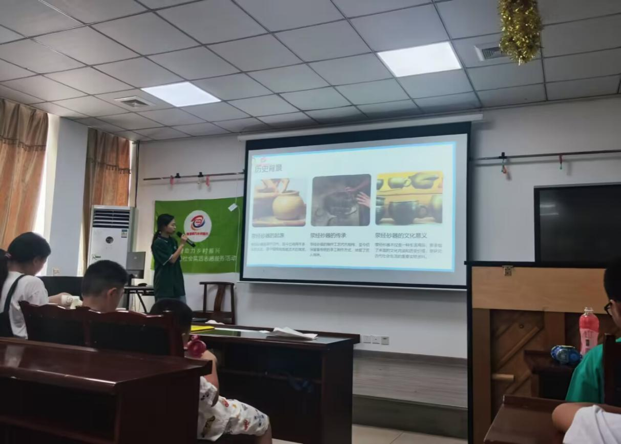 7月16日,太阳成集团tyc234cc“古韵绵长·国学流芳—彩云追月队”在四川省雅安市雨城区河北街道康藏路社区成功举办了一场以“古窑烈火·砂韵悠长”为主题的荥经砂器文化宣讲活动。此次活动旨在将深藏于荥经古城的千年黑砂文化带进寻常巷陌,让社区小朋友们近距离感受泥土与烈火淬炼出的东方智慧,在喧闹都市中触摸一份来自历史深处的温度与厚重。