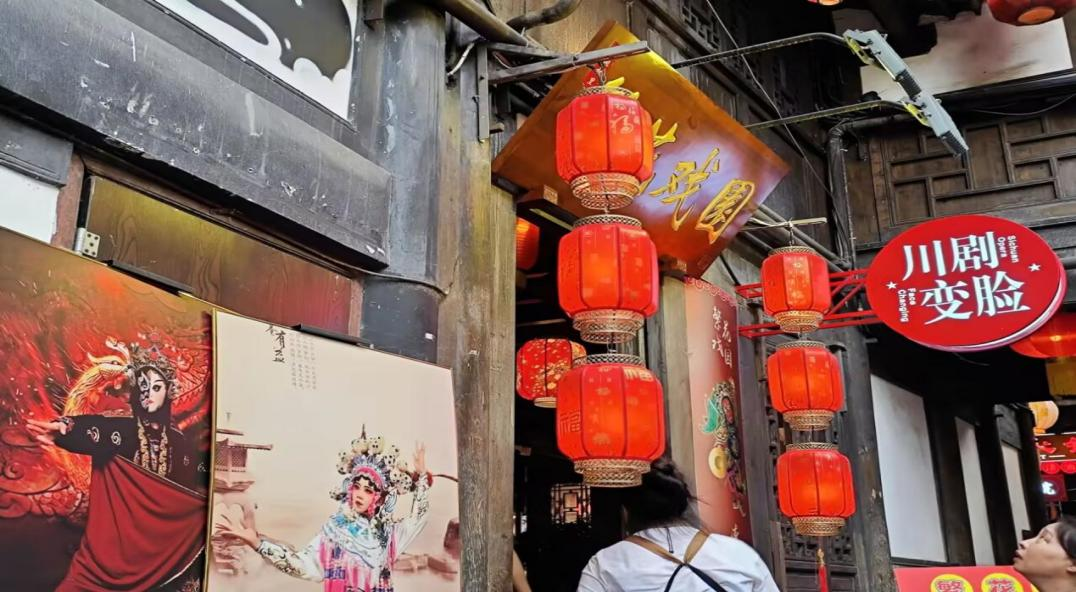 锦里古戏台是本次实践的重点调研对象。团队在古街观察了川剧变脸、皮影戏等传统表演,并对表演者与观众进行了访谈。观众以青少年与外地游客为主。表演者李师傅介绍:“现在的川剧表演在保留核心技艺的同时,会融入现代灯光音效,目的是让年轻观众更容易接受。”团队成员注意到,戏台旁设置的“川剧知识角”通过图文展板与互动体验装置,使传统艺术传播更具趣味性。
