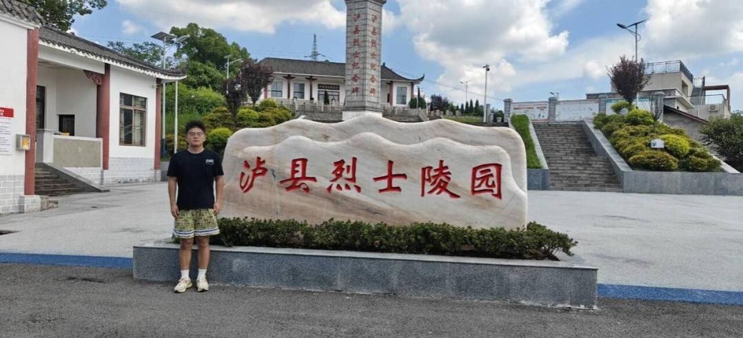 8月8日,另一小队成员前往泸县烈士陵园进行参观学习。泸县烈士纪念碑,位于陵园中央,庄严肃穆,上面刻有革命老人谢觉哉的题词 “人民幸福日增长,烈士英名千古扬”,是纪念和缅怀革命英雄先烈的重要象征。