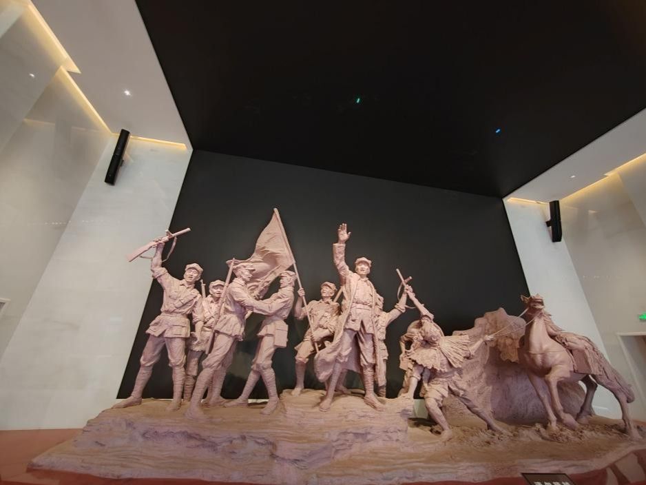 首先,小虎队队员们踏入安顺场中国工农红军强渡大渡河纪念馆。在肃穆的氛围中,队员们在讲解员的深情讲述下,凝视一件件承载烽火岁月的文物——磨损的草鞋、简陋的武器、泛黄的电文,仿佛穿越时空,亲历那场关乎红军生死存亡的惊险之战。大渡河水的咆哮声犹在耳畔,十七勇士舍生忘死、奋勇强渡的壮举清晰如昨。纪念馆内“红军不怕远征难”的标语深深镌刻进每位队员的心中。