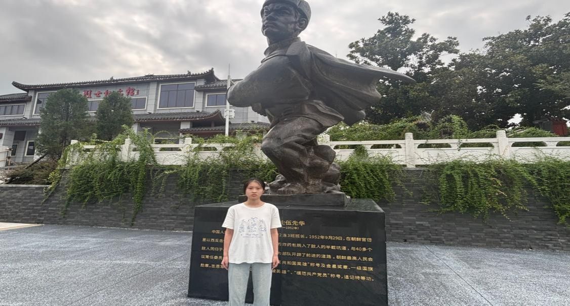 活动伊始,实践队员来到革命烈士纪念碑前举行缅怀仪式,集体默哀并敬献鲜花,表达对先烈的敬意与哀思。随后,队员跟随讲解员参观烈士纪念馆。馆内陈列着大量历史照片、文献资料和烈士遗物,实践队员了解到遂宁地区革命斗争的光辉历程。接着,团队成员参观了武先华烈士雕像。在碑文中,队员们学习了武先华烈士在朝鲜战争中舍身歼敌的英勇壮举,感受到战争烽火岁月的艰苦与壮烈。参观过程中,实践队员感触颇深,在游览后感慨道:“烈士们的牺牲换来了我们今天的和平与发展,他们的精神永远激励我们前行。”