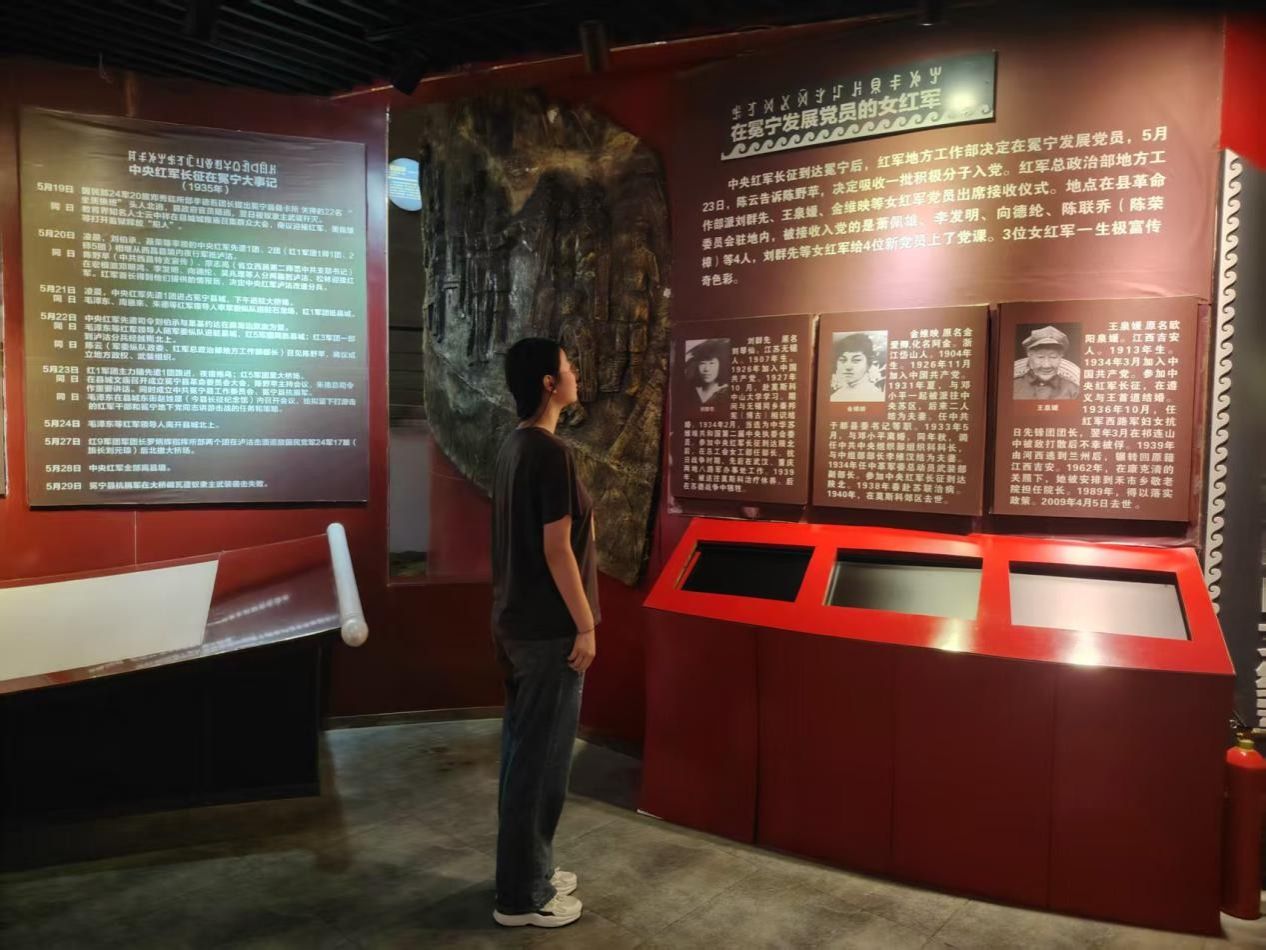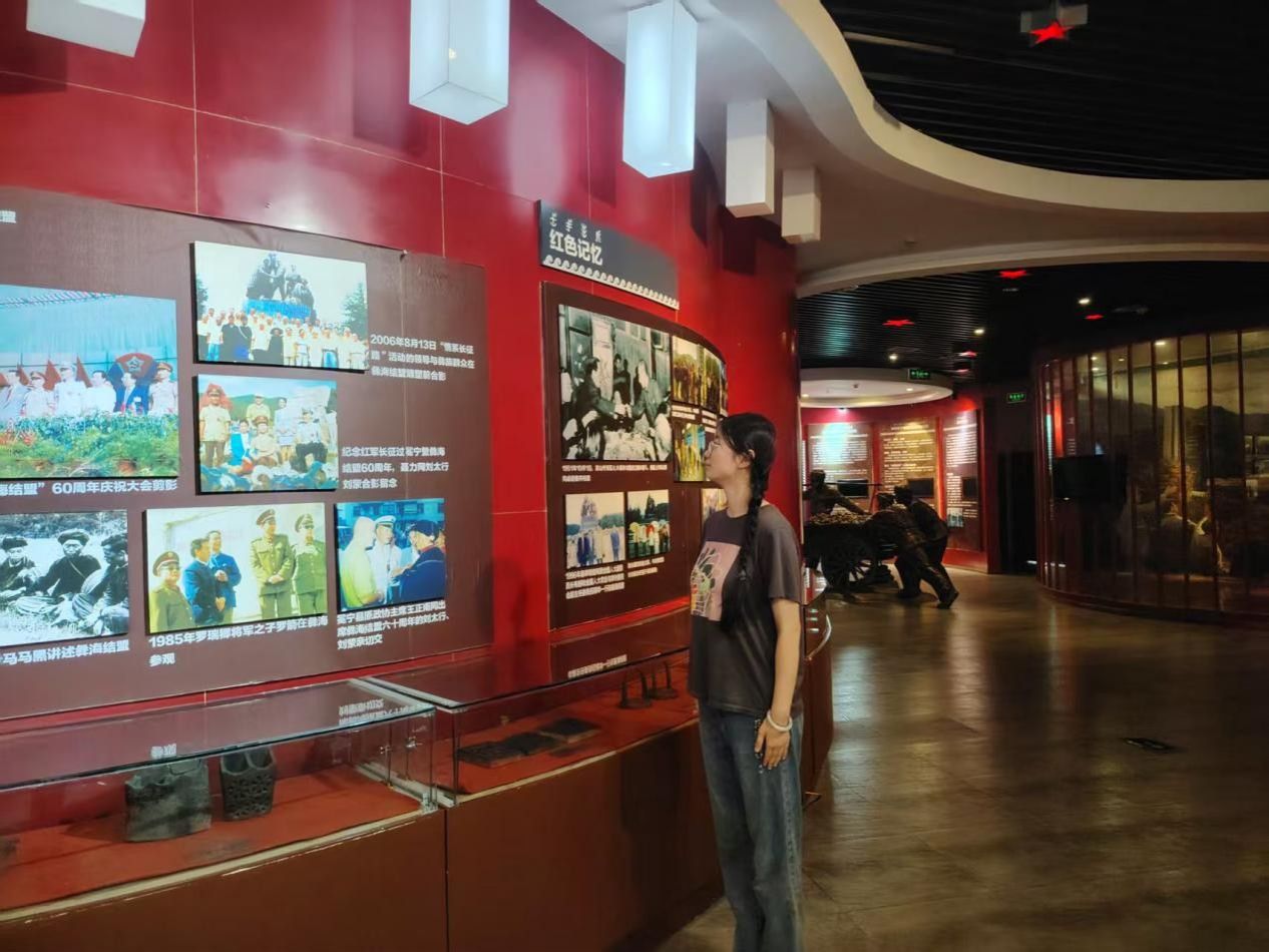 随后,实践队来到红色冕宁纪念馆。这里,以丰富的实物、图片和场景复原,生动展现了红军长征过冕宁的壮丽篇章。从“彝海结盟”传递的民族团结力量,到冕宁儿女踊跃参军、支援红军的热血画面,再到革命先辈在冕宁这片土地上战斗、生活的珍贵印记,一段段史实串联起革命岁月的烽火记忆。队员们驻足凝视,认真聆听讲解,感受着革命先辈与群众鱼水相依、共克时艰的深厚情谊,深刻认识到红色政权来之不易。
