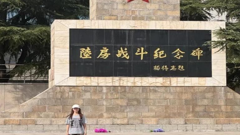 同一时间,在陆房突围胜利纪念馆里,第二小组也在开展红色教育实践活动的进程中。团队成员在陆房战斗纪念碑前举行缅怀仪式。纪念碑由杨得志上将题写,团队成员肃立默哀,表达对革命先烈的敬意。