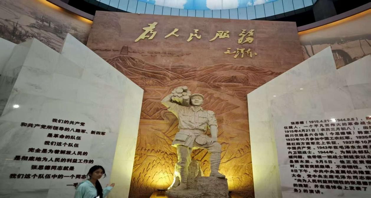 张思德纪念馆作为传承红色基因的重要阵地,陈列着珍贵史料,生动展现张思德同志短暂而光辉的一生。实践团成员踏入馆内,在讲解员的引领下,依次参观 “苦难童年”“投身革命”“永恒丰碑” 等展区。陈旧的农具、磨损的草鞋,诉说着往昔的艰苦;详实的文献、感人的影像,重现了张思德全心全意为人民服务的点滴。在讲述张思德为救战友、英勇牺牲的展区,现场氛围凝重,同学们仿佛穿越时空,见证那震撼人心的瞬间。