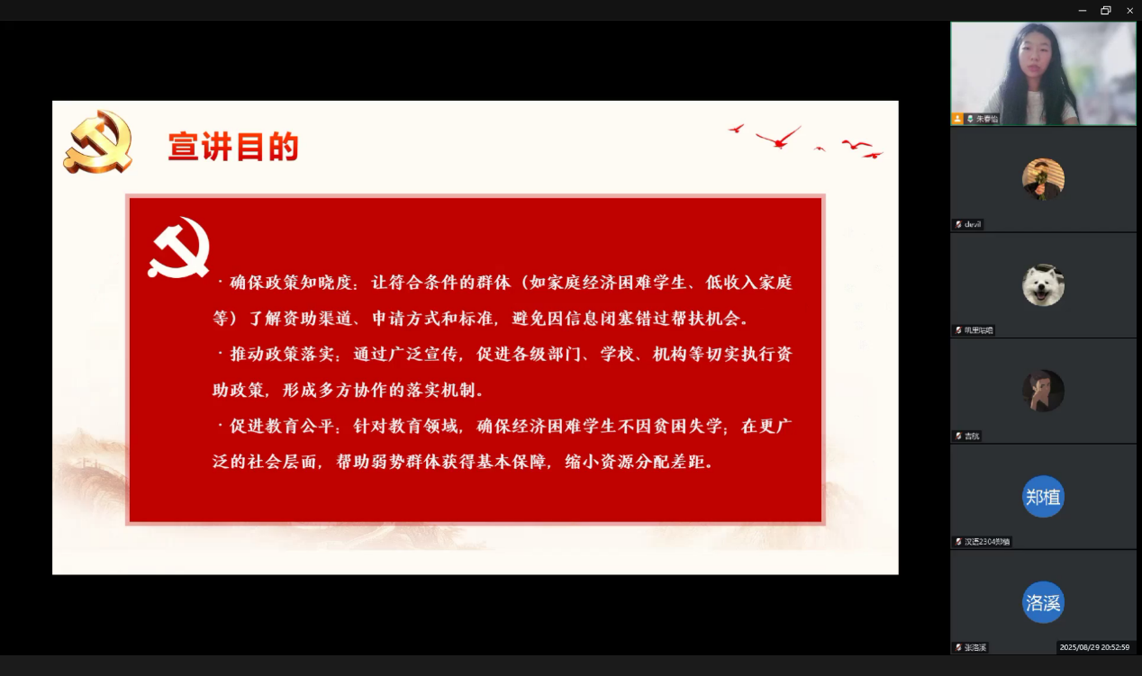 晚上八点会议正式开始。团队成员肩负“传递政策、助力成长”使命,为大家详细解读政策内容,讲述受助员工逐梦故事,了解困难学子家庭实际需求,践行“受助、感恩、回馈”的资助育人理念。国家员工资助政策,是教育公平的重要保障,帮家庭经济困难员工解决求学难题,助力孩子们实现知识改变命运。